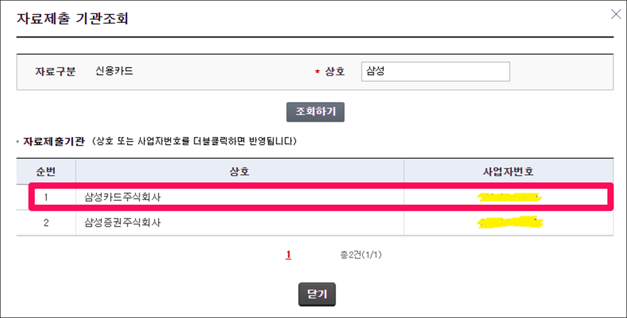 저는 삼성카드를 예로 들었습니다. (사업자검색방법은 아래와 같습니다.)